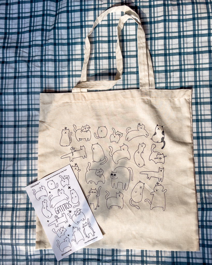• Tote bag hecha de manta 100% algodón, impresa con serigrafía.